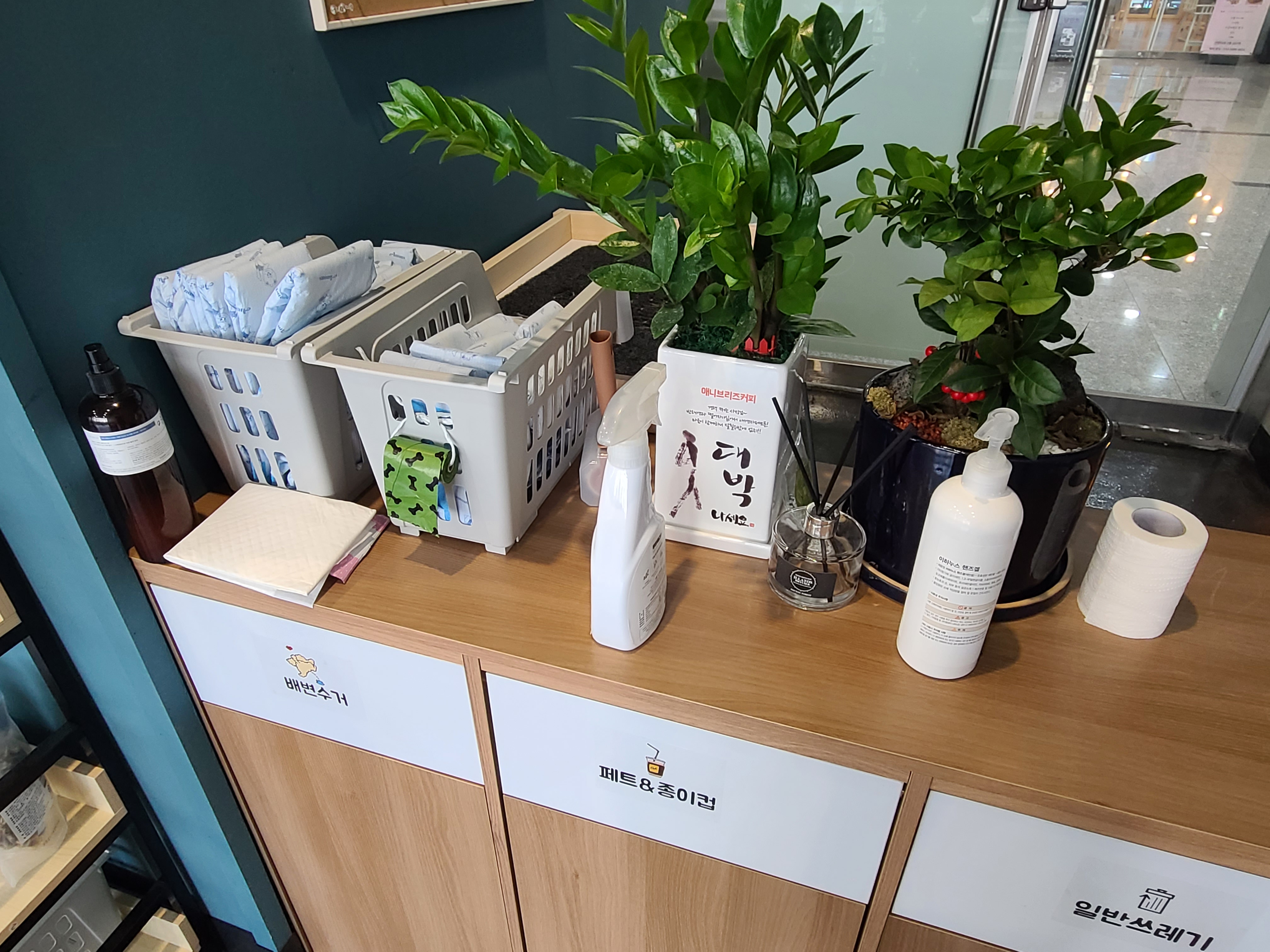 실내는 깔끔했고 입구에는 각종 물건들이 비치되어있습니다.
